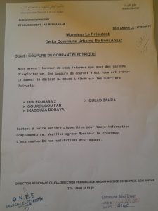 وأشارت الوكالة الإقليمية للخدمات للمكتب الوطني للكهرباء والماء الصالح للشرب ضمن الإعلان الذي توصلت به جماعة بني أنصار إلى احتمال عودة التيار الكهربائي قبل الوقت المحدد.